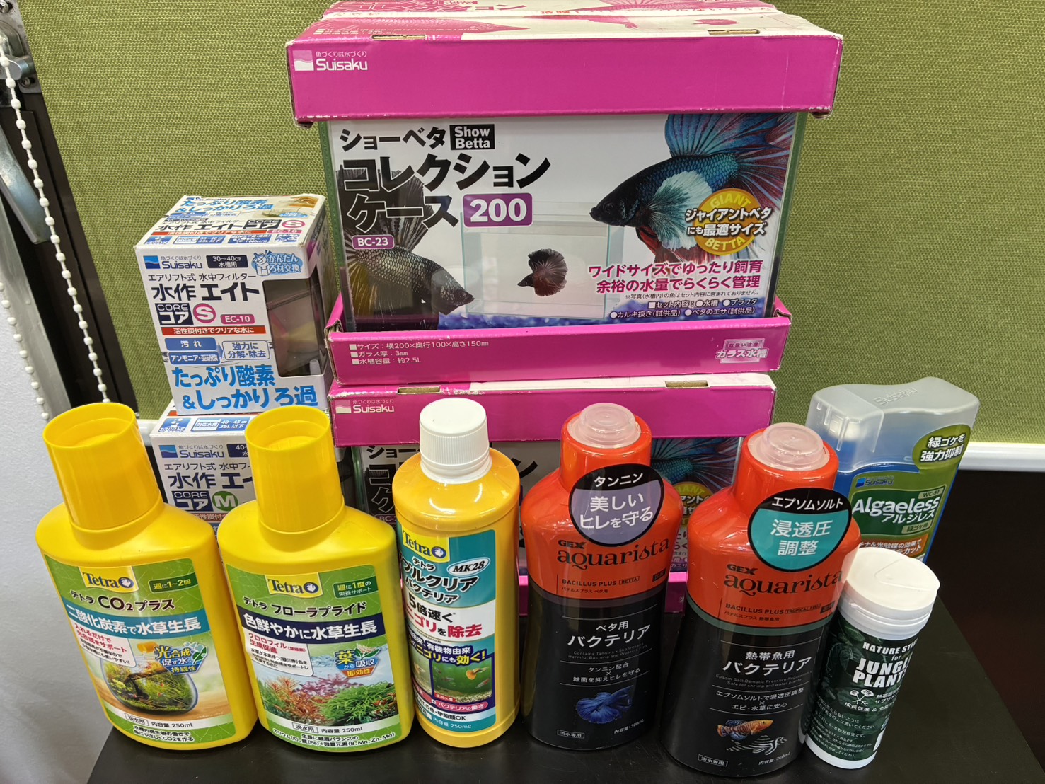 ・エヴァリス、esAqua、キョーリン、コトブキ工芸、サンミューズ、スペクトラムズブランズジャパン(テトラ)、GEX、水作、バイオキミア、マツダ、ラボック