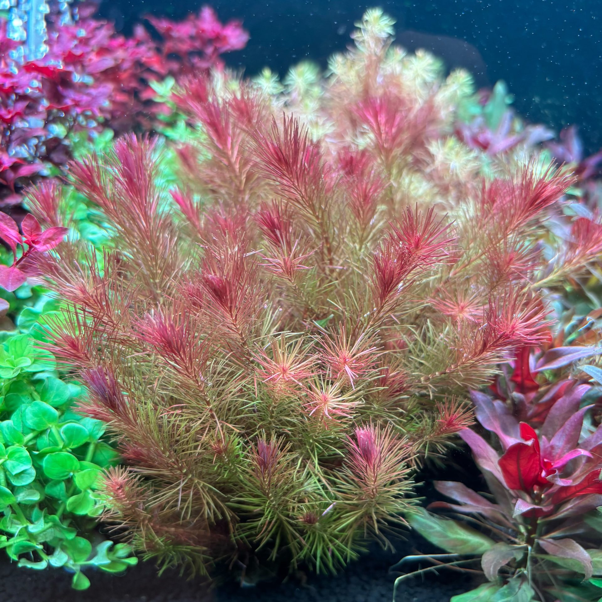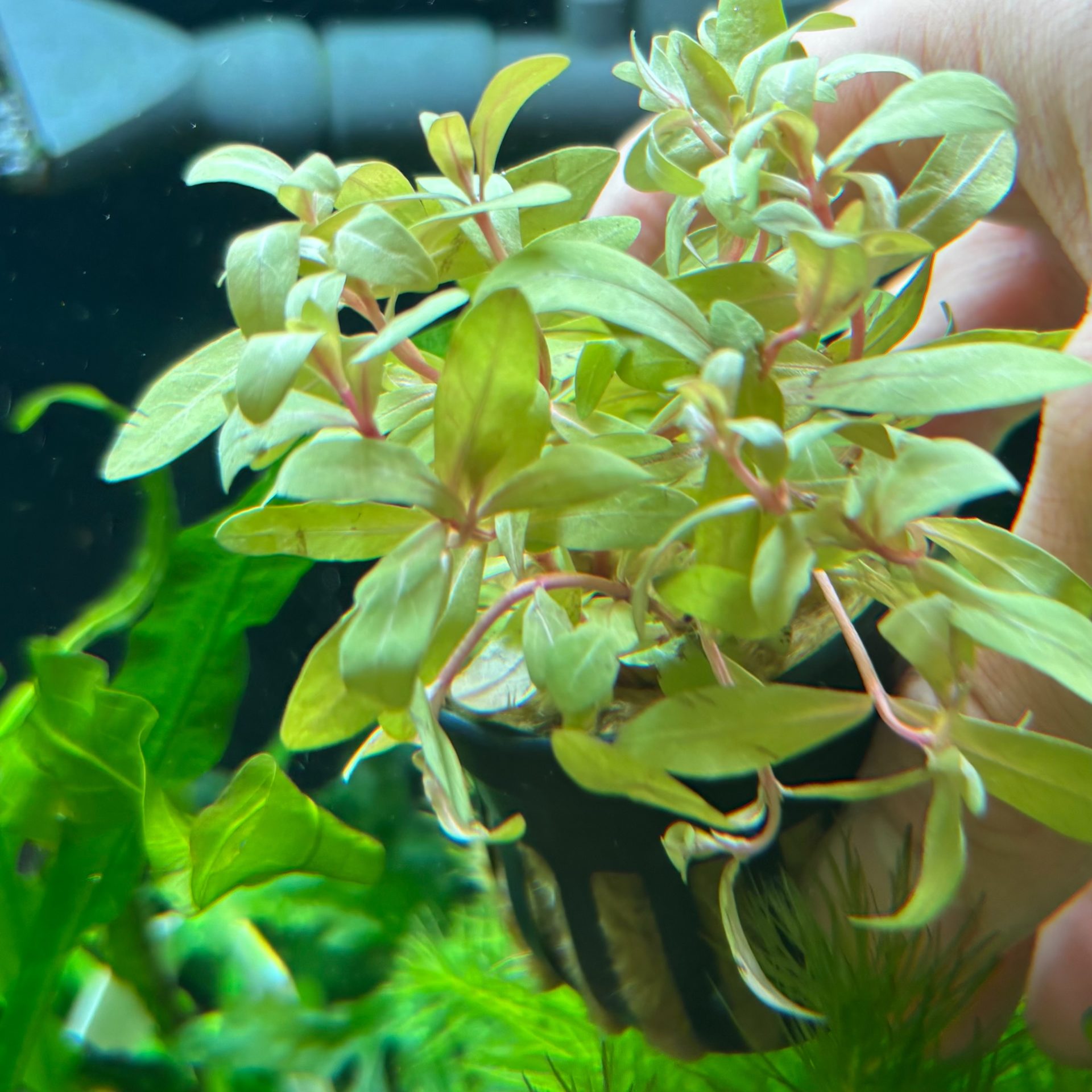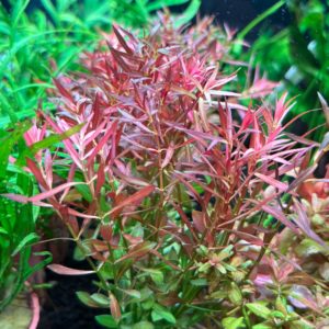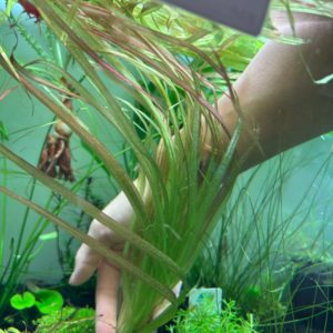 赤褐色の細い葉が特徴的なルドウィジアの仲間。硬度の高い環境でもよく育ち、トリミングにも強いので、後景のアクセントとして活躍します!植える本数が少ないとスカッとした見た目になるので、最初はある程度まとまった本数を植栽してあげましょう。