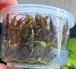 中景に使いやすい赤系のクリプトコリネ。1カップにかなりの株数が入っているので、レイアウトでたくさん使用したい方向けです。